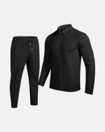 Men’s Solid-Colored Waffle-Texture Top With Zipper And Lapel Plus Long Pants All-Season Casual Suit