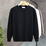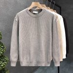 Mens Versatile Simple Solid-Color Apricot Knitted Sweater