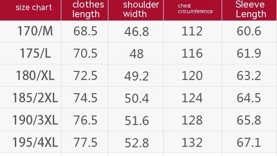 Size: 170/M,175/L,180/XL,185/2XL,190/3XL,195/4XL