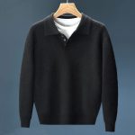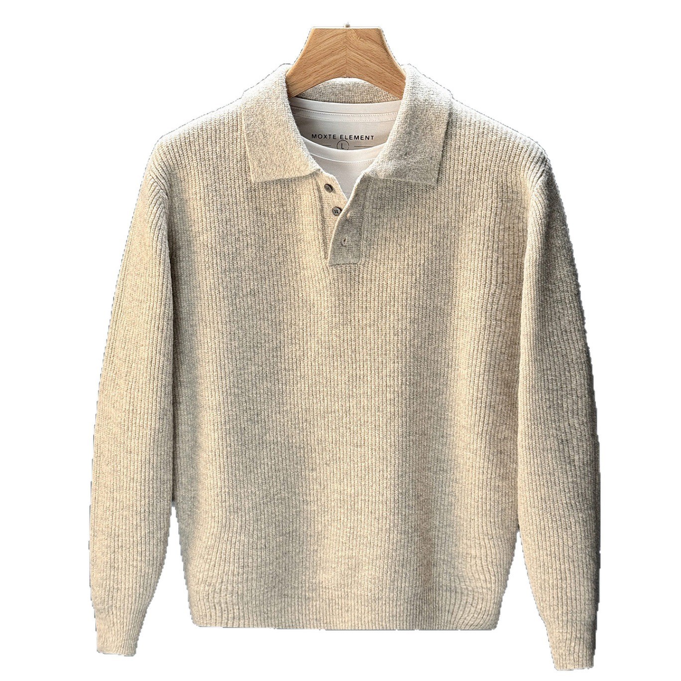 Mens Winter Retro Casual Knitted Solid-Color Sweater