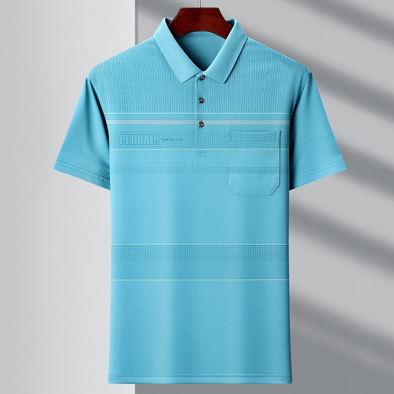 Men’s Youth Polo Collar Stripes Real Pocket T-shirt Polo Shirt