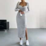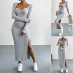 Mia Muse Summer Dresses 2025 Women’s Elegant Classic Plain Long Sleeve Sweetheart Neck Side Slit Long Dress