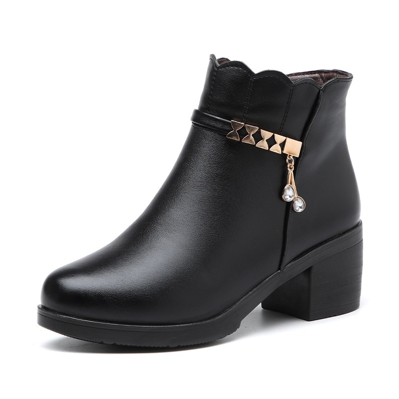 Middle-aged And Elderly Mid-age Warm Short Boots Anti-slip Leather Shoes
