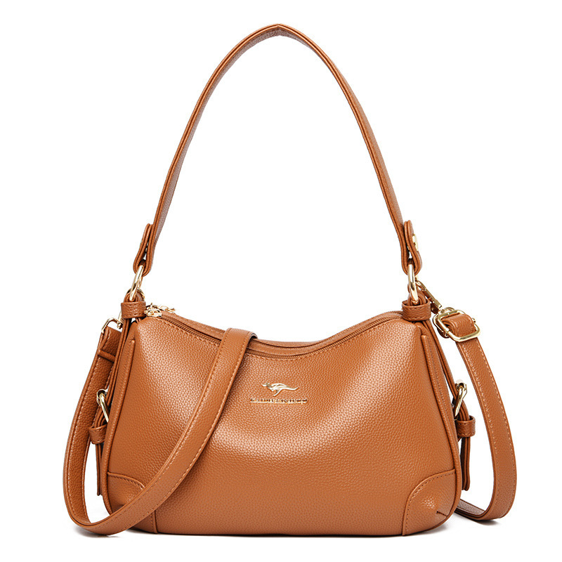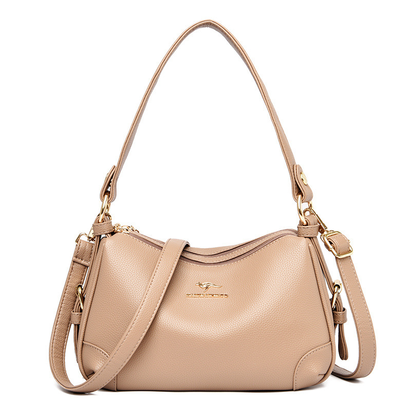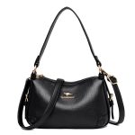 Middle-aged Women’s Bags, Solid Color Bags, Ladies Fashion Soft Leather Large-capacity One-shoulder Messenger Bag