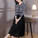 Miyake-Inspired Pleated Dress – Checkered Splice Slimming Skirt for Plus Size Women
