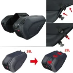 Total package volume around the edge 36L- 58L. Unilateral maximum capacity of 29L. Down almost any type of helmet