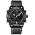 NAVIFORCE 9144 Fashion Gold Men Sport Watches Mens LED Analog Digital Watch Army Military Leather Quartz Watch Relogio Masculino