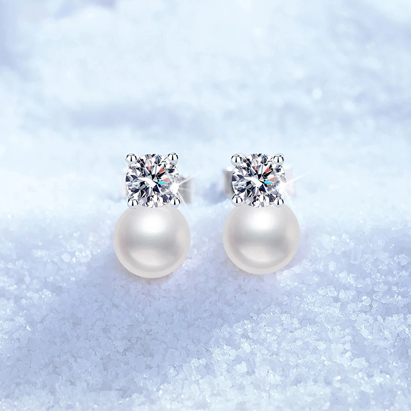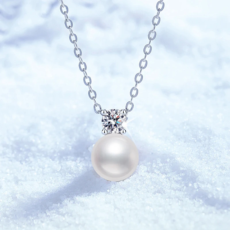 NeeTim D Color Moissanite Pearl Jewelry Set – 4mm Pendant Necklace & S925 Earrings Gift