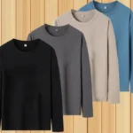 New 2024 Spring Autumn Men’s T-shirt Soft Round Neck Solid Color Long Sleeve Top Layer Base Layer Cotton