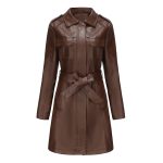 New European And American-style Mid-length Leather Coat With Belt Fashion British Coat For Women