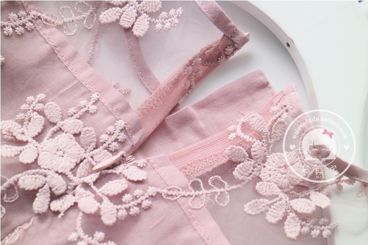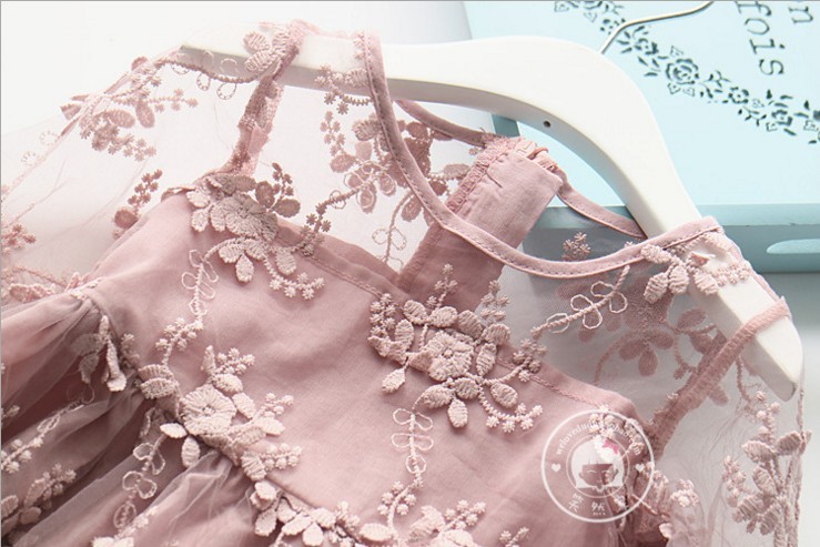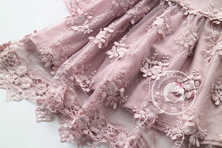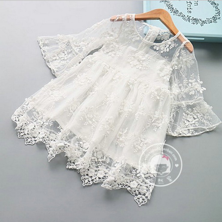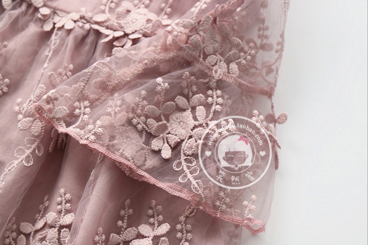 2017 new version of Korean foreign trade children’s clothing, children’s princess skirt, lace trumpet sleeve embroidery, soft skirt, girl dress