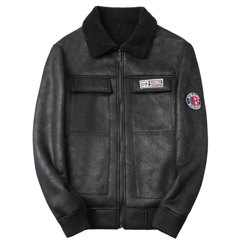 New Winter Men Casual Fur Integrated Jackets New Fashion Male Slim Fit Motorcycle Leather Jackets Bomber Aviator Jackets Size 4X