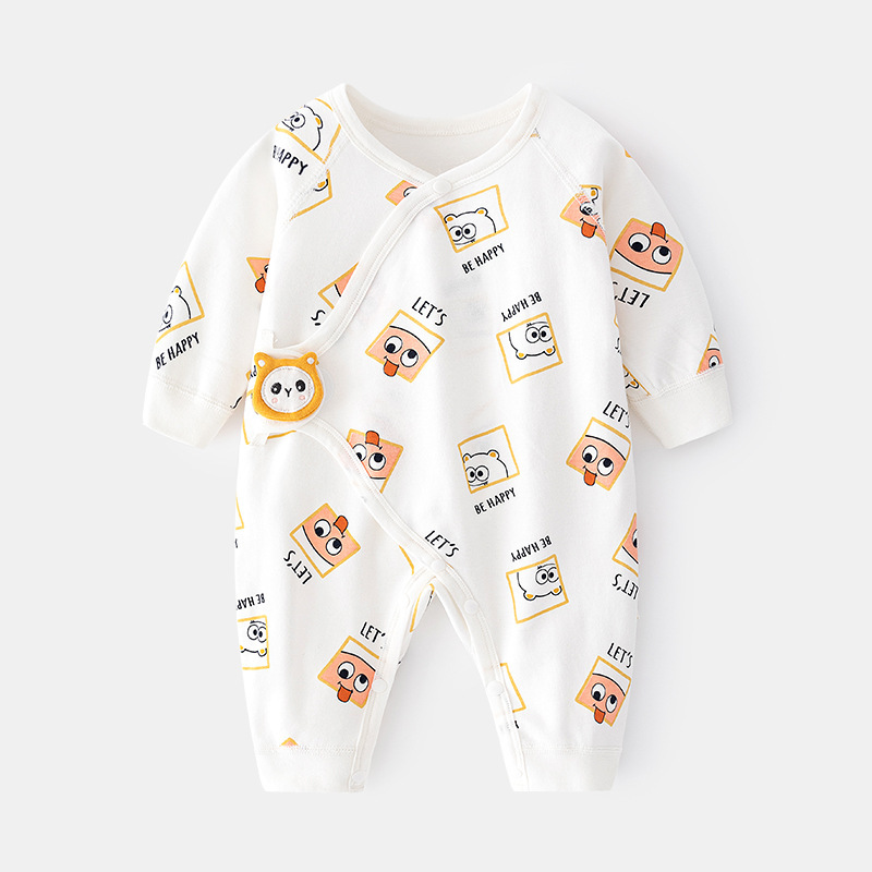 Newborn Jumpsuit Baby Boneless Romper Autumn And Winter Pure Cotton Newborn Gown Romper Velcro Baby Clothes
