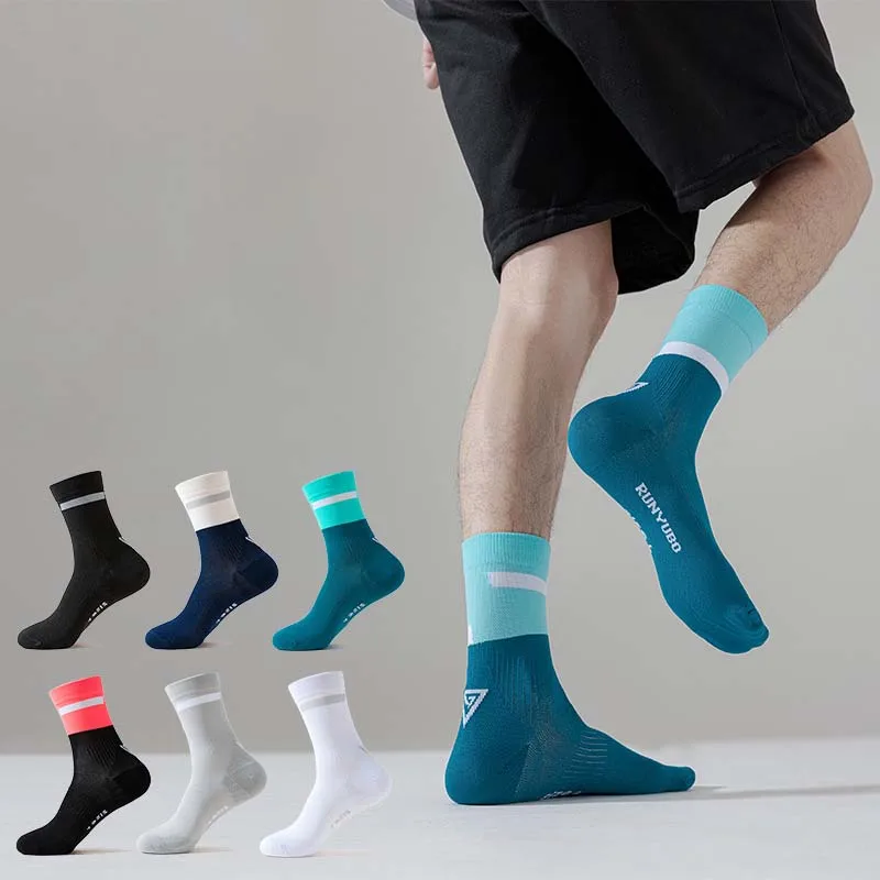 Outdoor Men Sports Elite Socks Breathable Cushion Middle Tube Marathon Running Fitness Gym Training Crew Cycling Socks