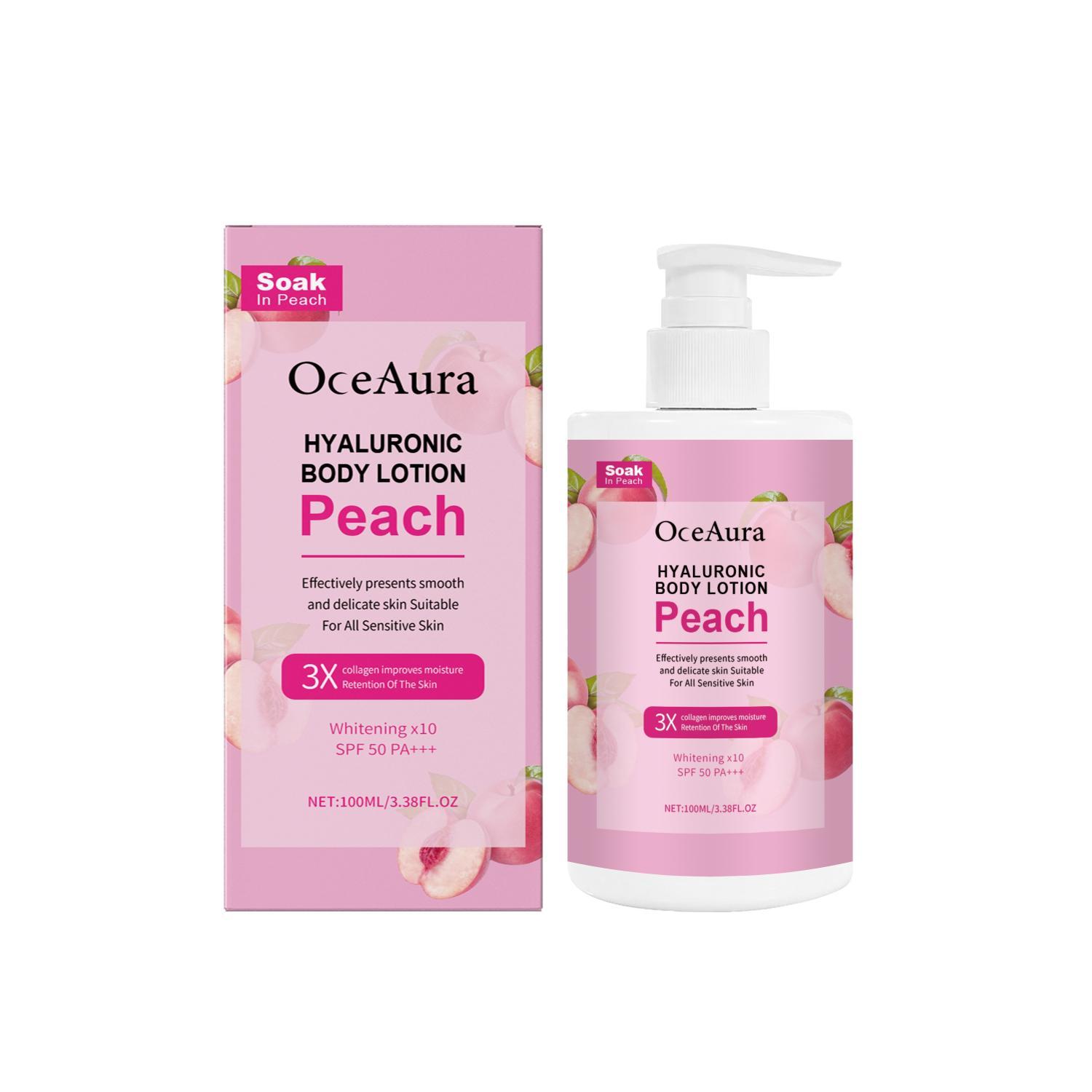 Ingredients: water, glycerin, mineral oil, polysorbate -60, carbomer, triethanolamine, coconut oil, hyaluronic acid, nicotinamide and peach extract.