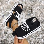 Plus Size Thick-soled Peep Toe Lace Up Casual Roman Sandals