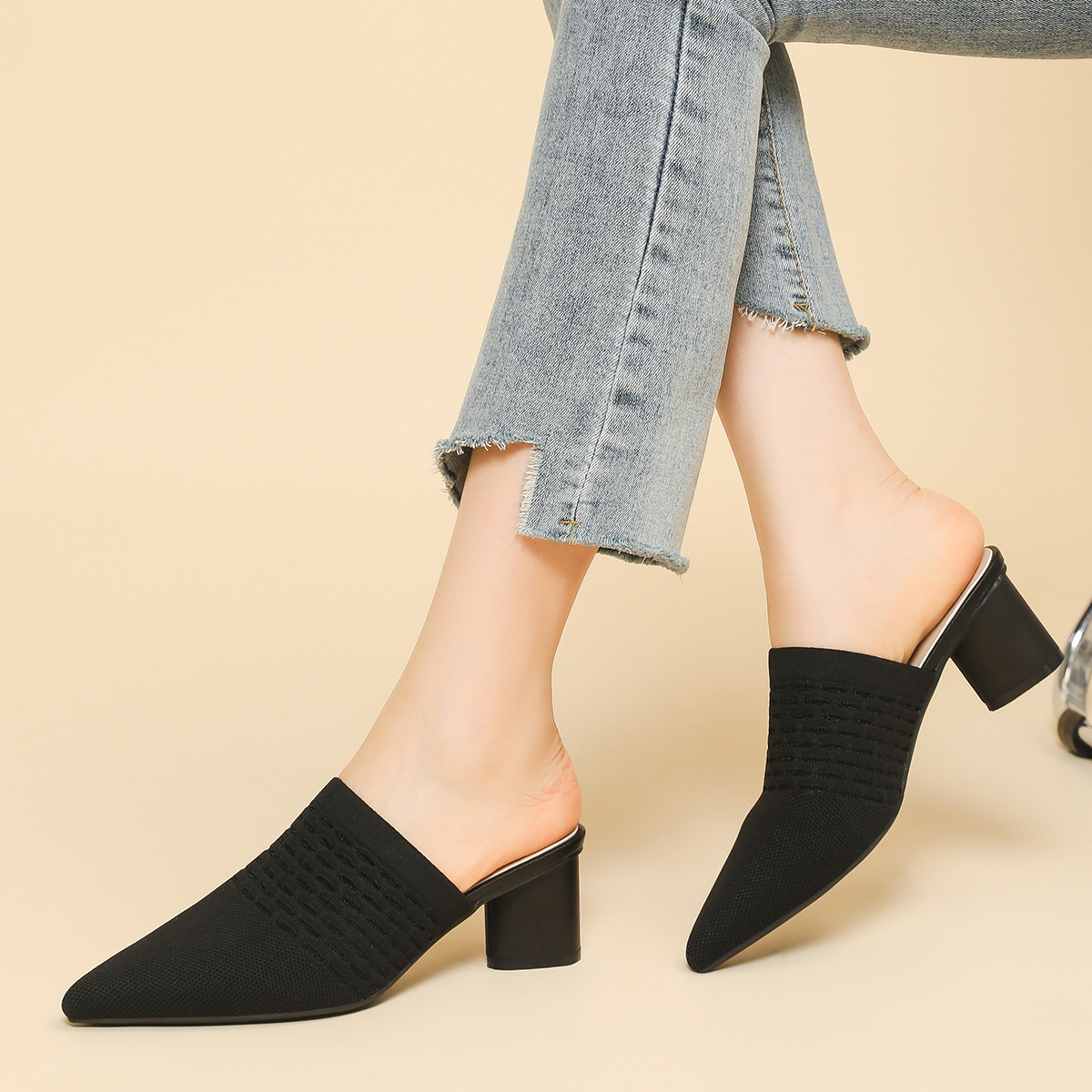 Pointed Toe Toe Cap Sandals Chunky Heel High Heels