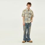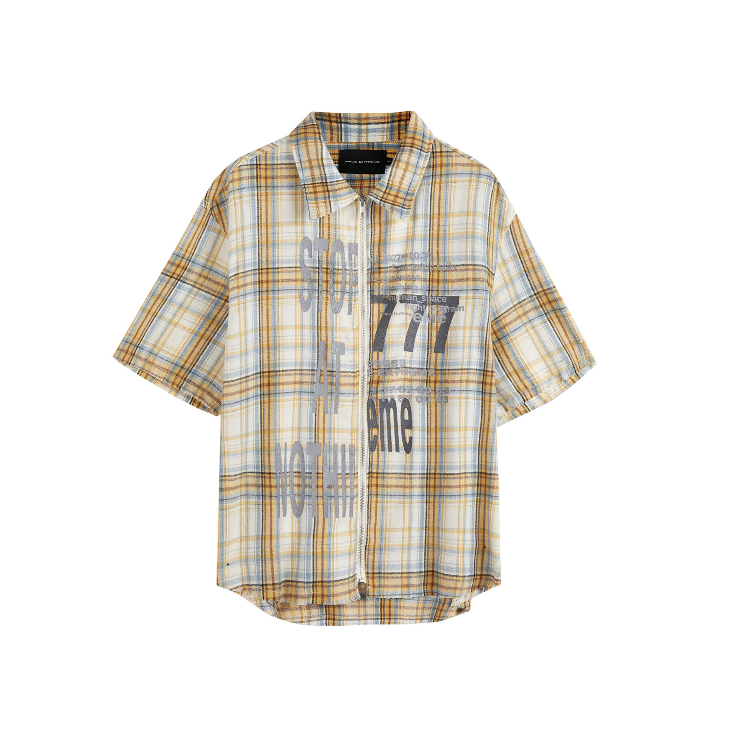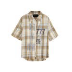 Printed Washed Tassel Short Sleeve Plaid Shirt