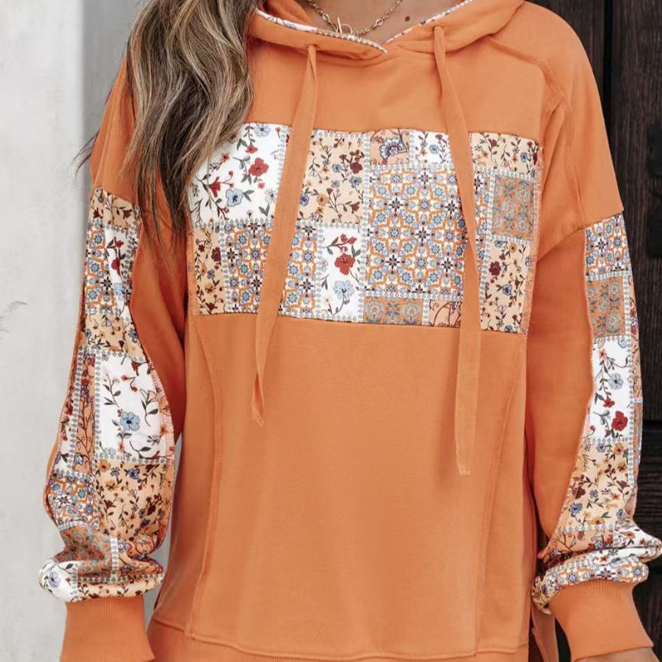 Pullover Hoodie With Drawstrings Top Casual Printed Loose Sweatshirt
