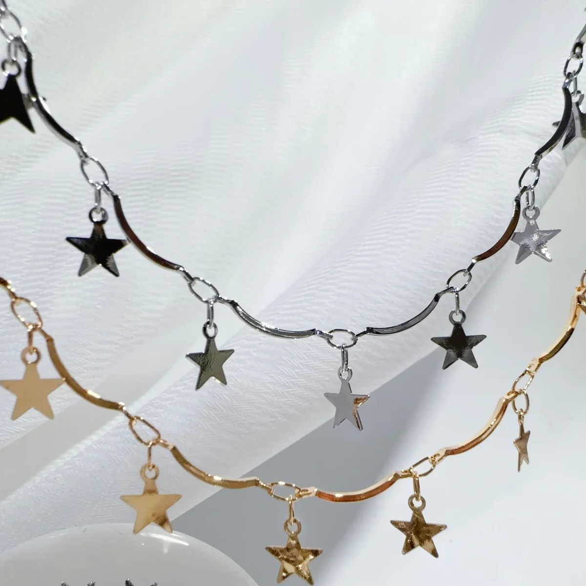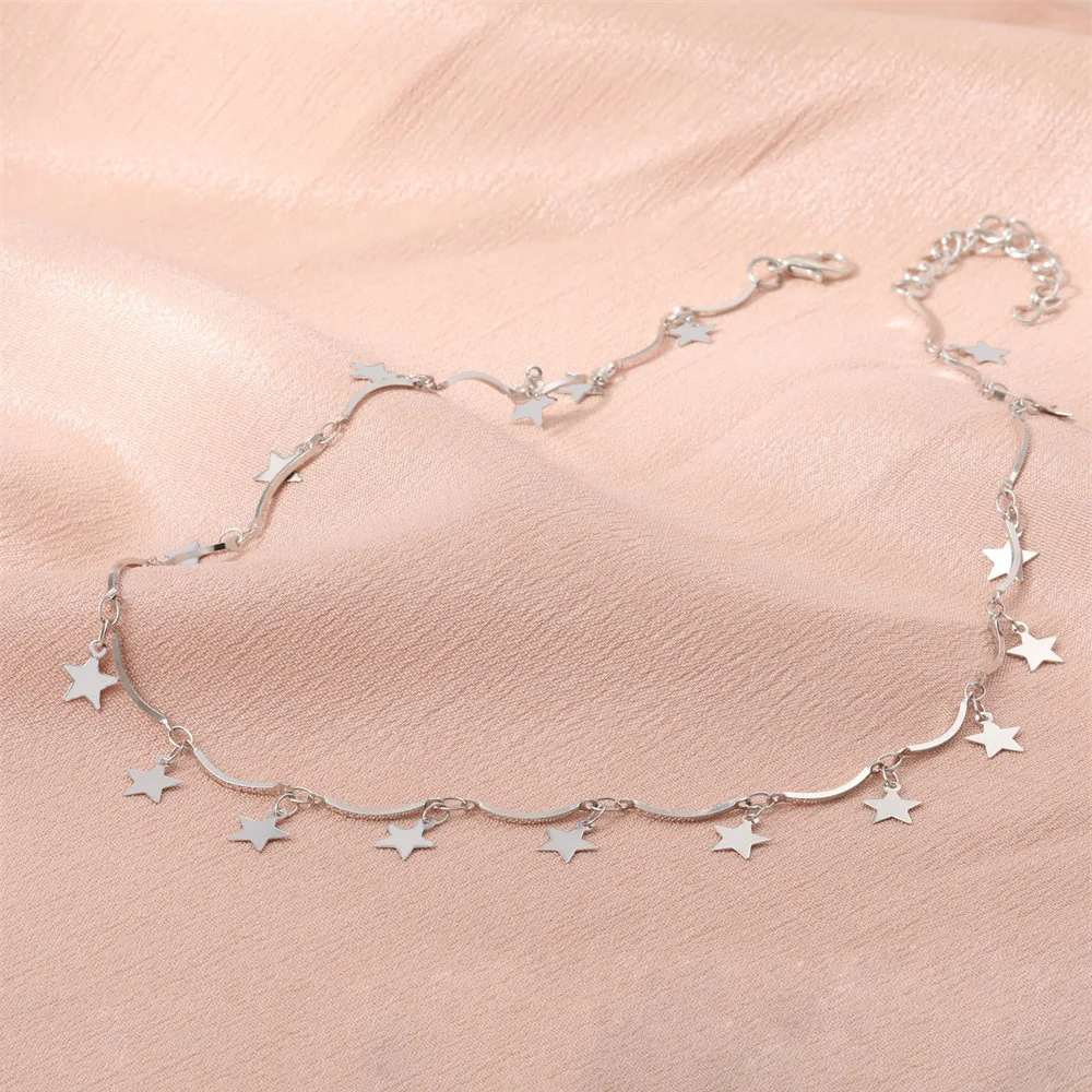 Punk Star Pendant Necklace for Women – Retro Geometric Tassel Clavicle Chain, Elegant Jewelry for Daily & Party Wear