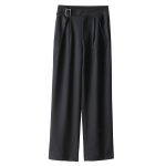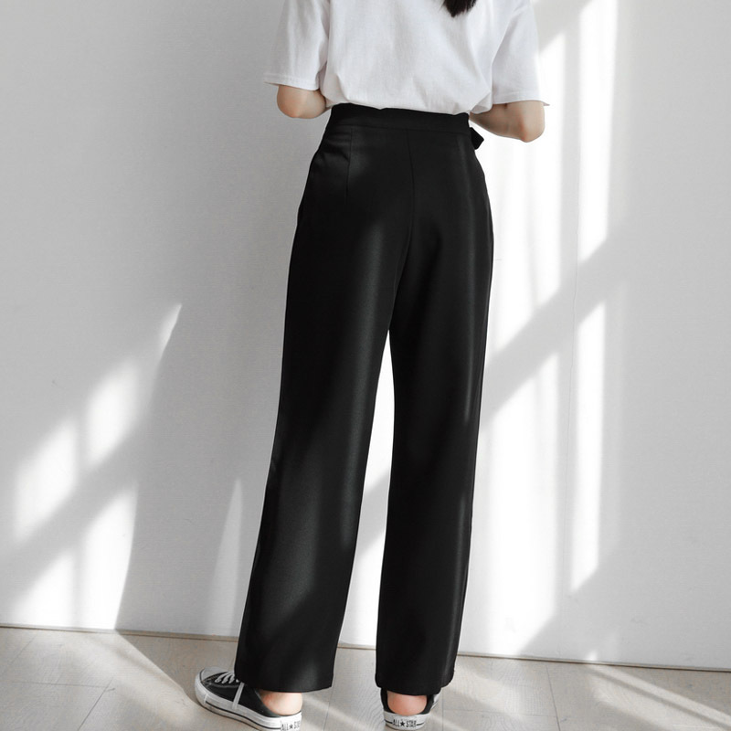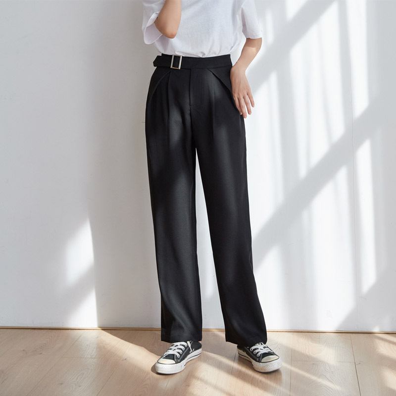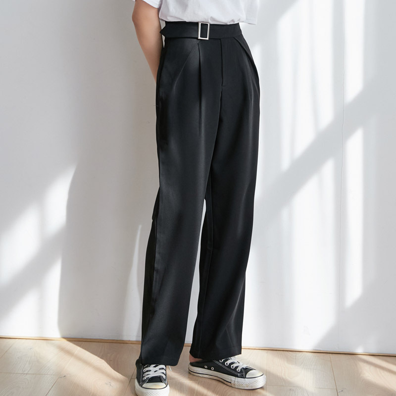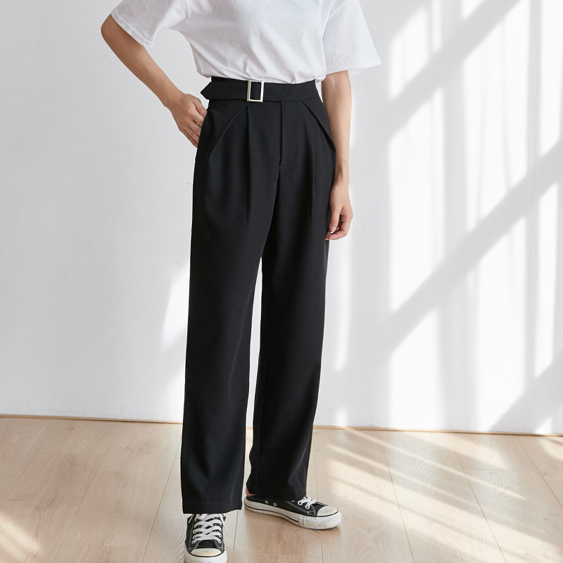 Pure Color Casual Adjustable Folding High Waist Suit Straight Leg Pants Female Korean Version Was Thin Solid Color Straight Leg Pants