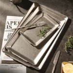 Rectangle Retro Stainless Steel Storage Trays Food Bread Plate Kitchen Home Desktop Decoration Metal Dinnerware Plate