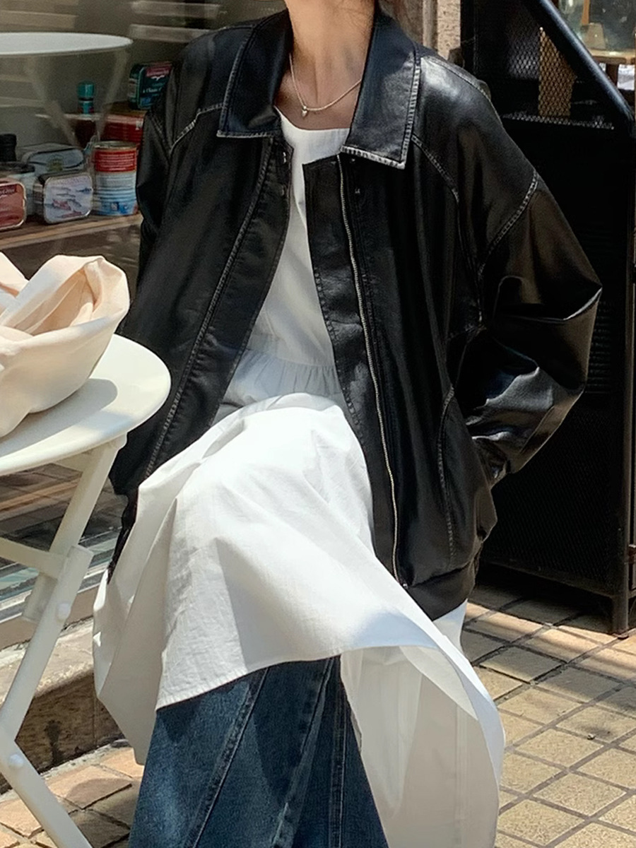 Retro Brushed Vintage Brown Leather Coat For Women Spring And Autumn