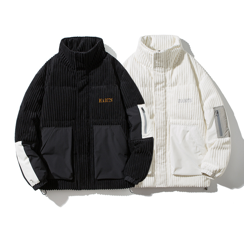 Retro Corduroy Stand-up Collar Down Jacket Men’s Winter Loose And Warm