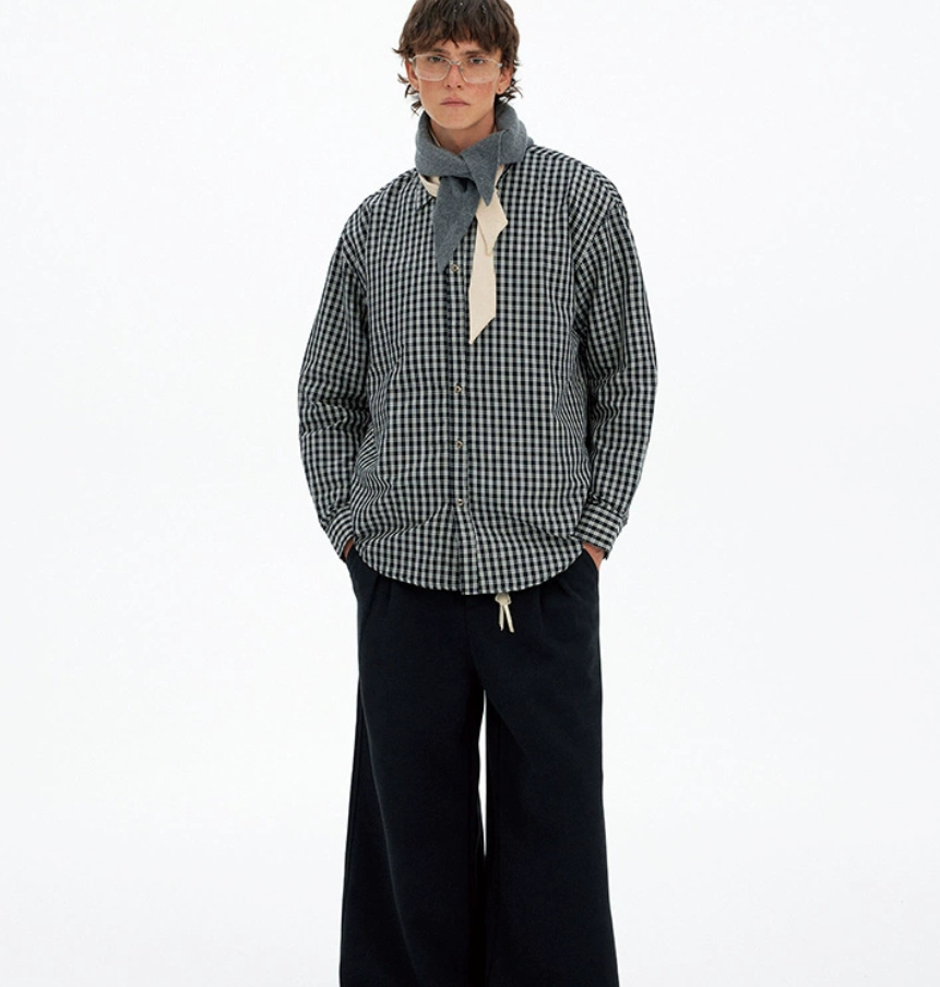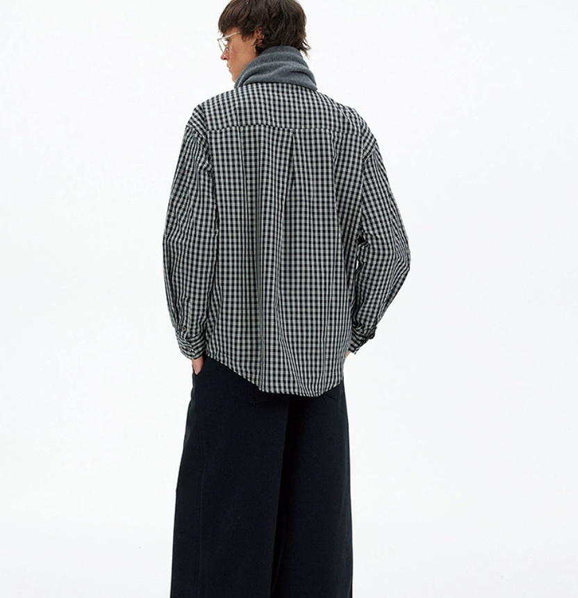 Retro Minimalist Color Block Plaid Long Sleeve Shirt