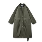 Retro Olive Green Loose Flip Pocket Trench Coat