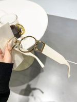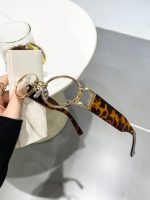 Style 10: gold frame leopard patterned pants leg white flat shoes
