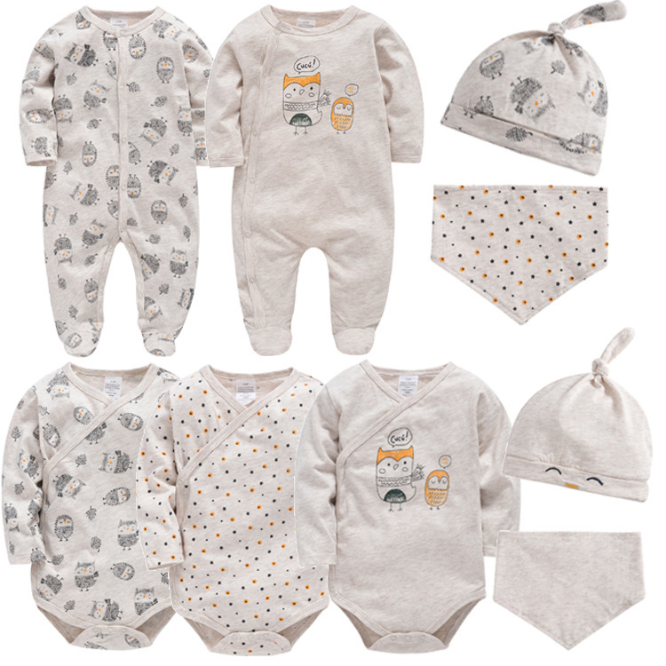 Color: Owl Printed Long Sleeve Romper HY2214, Colored Cotton Fully Printed Star Printed Long Sleeve Romper HY2215, Colored Cotton Fully Printed Owl Long Sleeve Romper HY2216, Colored Cotton Owl Printed Long Sleeve Romper PY1158, Colored Cotton Fully Printed Owl Long Sleeve Romper PY1159, pure color cotton hat PS8083, full print owl hat PS8084, pure color cotton saliva towel PS8085, full print star saliva towel PS8086