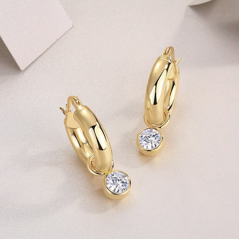Round Shadow – Luxurious And Fashionable Light Luxury Jewelry Stud Earrings Set With Top-quality Moissanite, S925 Silver Plated With Gold