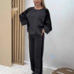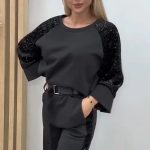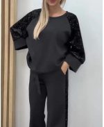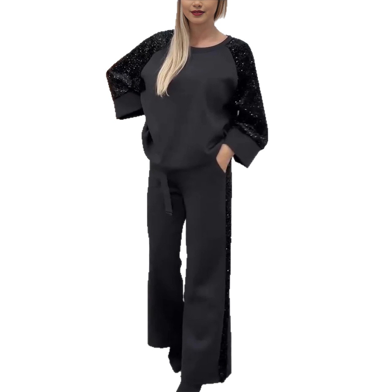 Sequined Patchwork Long-Sleeve Crew-Neck Sweatshirt And Sweatpants Set