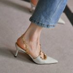 Color classification: creamy-white stiletto heel, creamy-white chunky heel