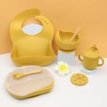Silicone Kids Bib Bowl Dinner Plate Mat Spoon Fork Set