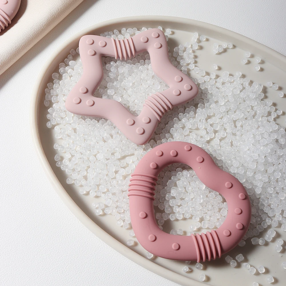Silicone Star & Heart Teether – Food-Grade Baby Teething Toy
