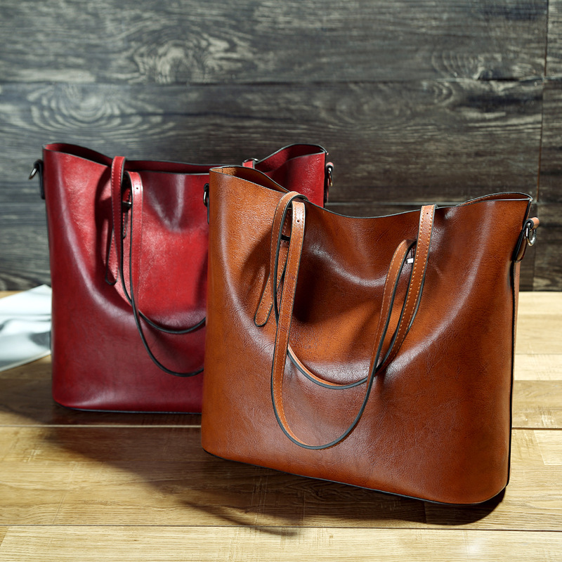 Simple Oil Wax Leather Messenger Shoulder Bags Women’s High Capacity Portable Tote Bag