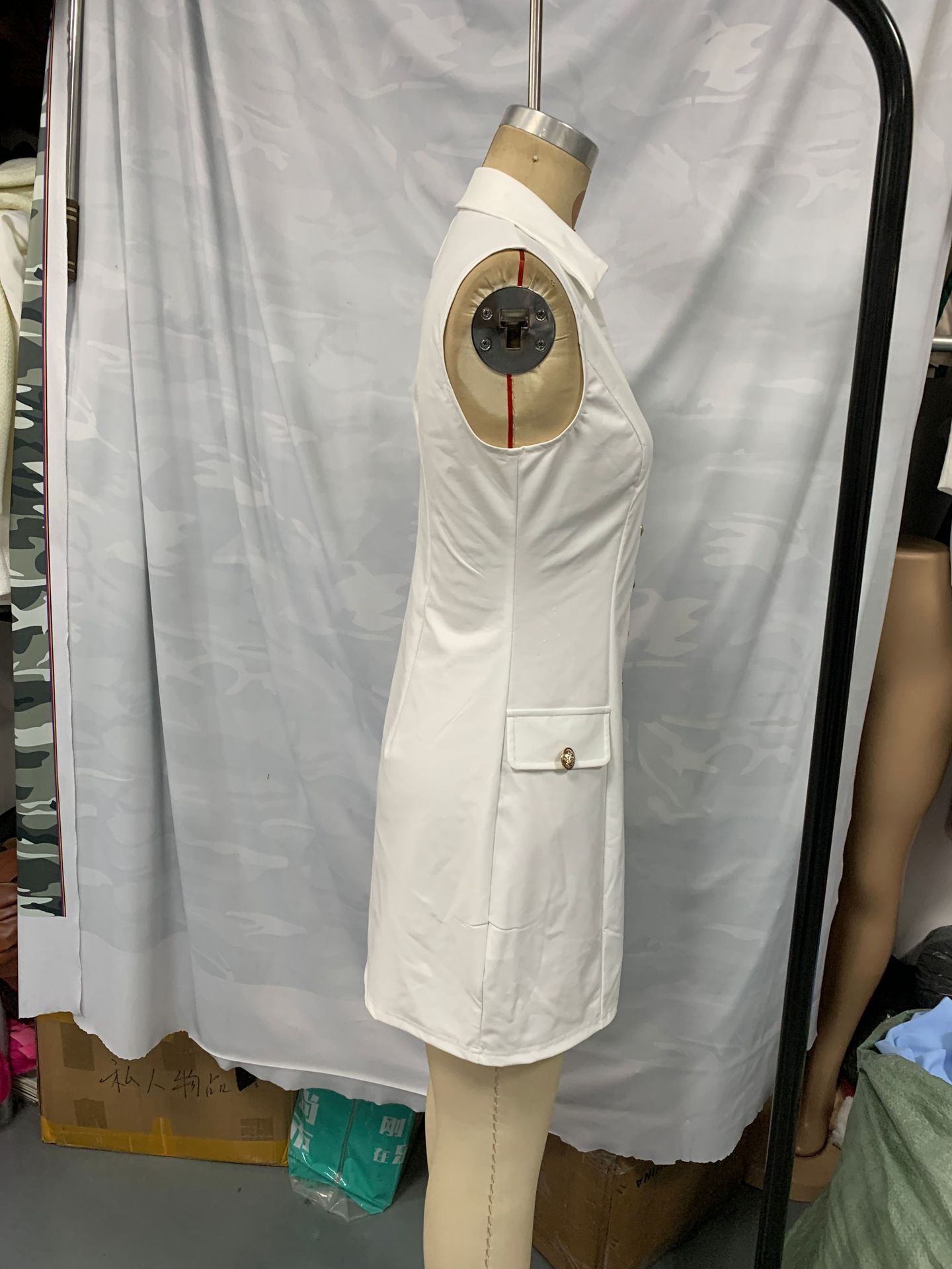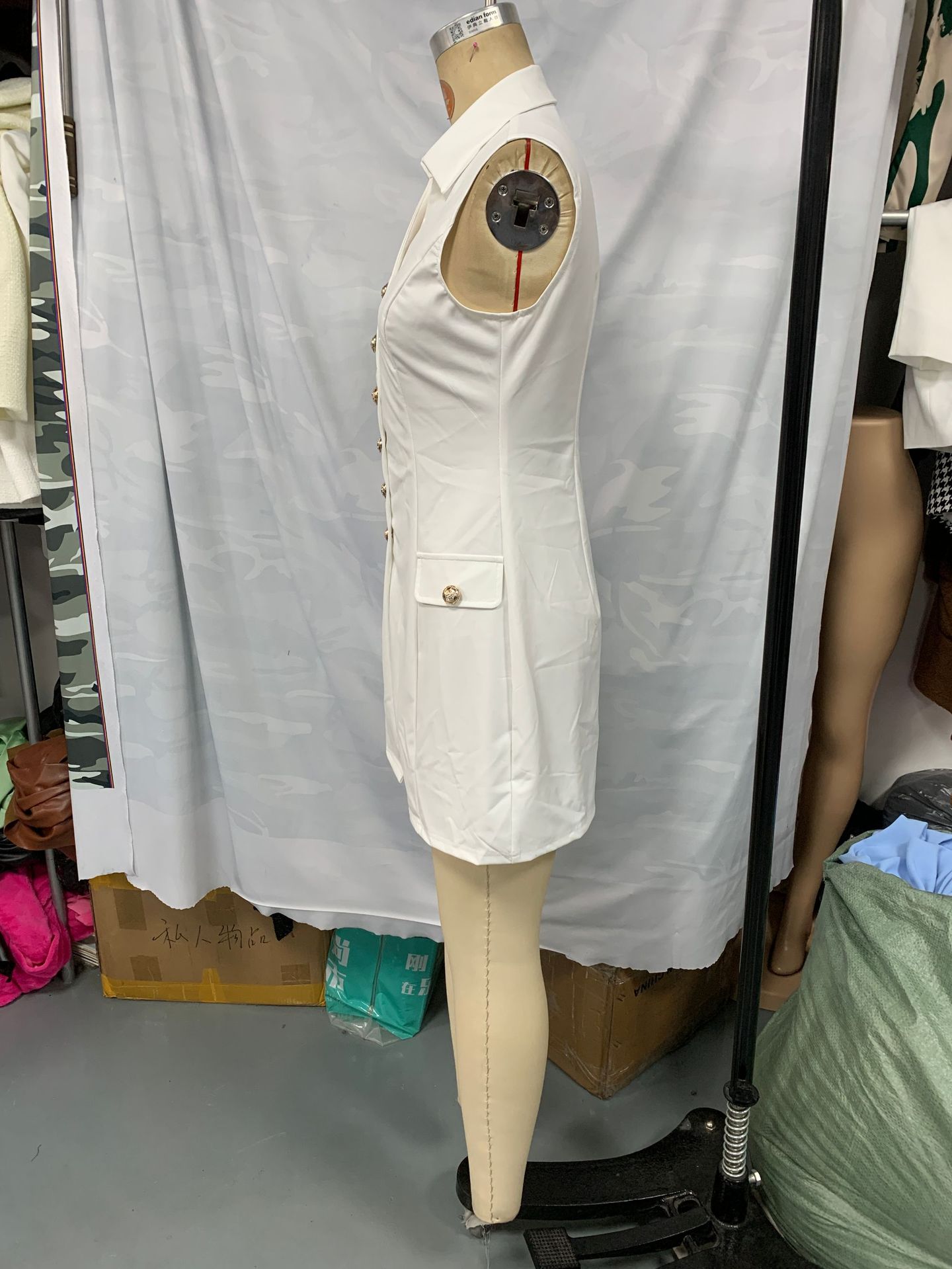 Simple Solid-Color Womens Single-Breasted Lapel Sleeveless Slim-Fit Dress