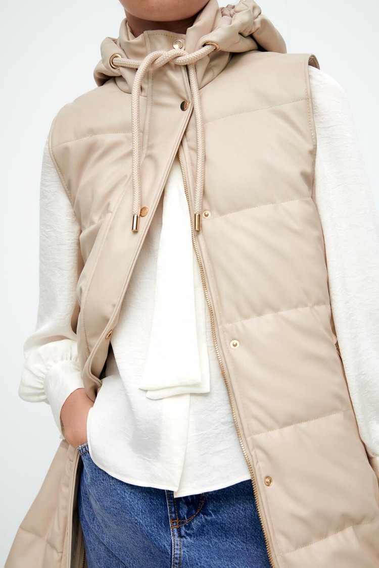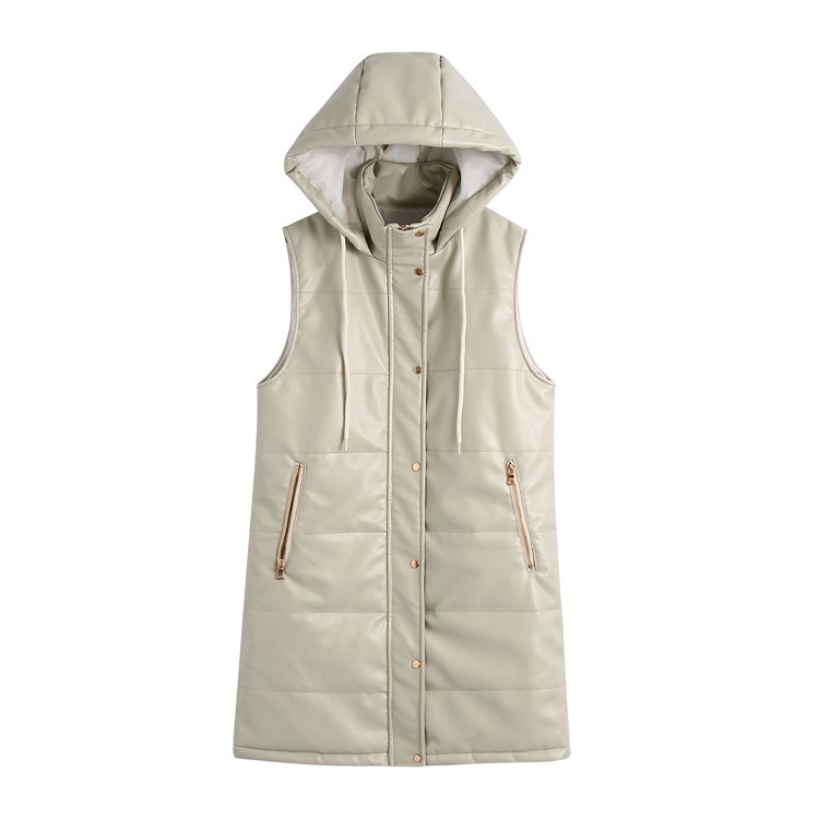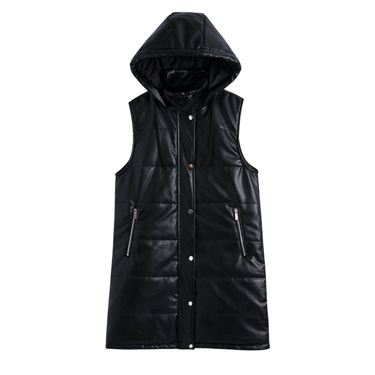Sleeveless Leather Hooded Medium Long Vest For Women