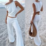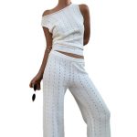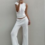 Sleeveless Tank Top And Casual Pants Knitted Womens Set