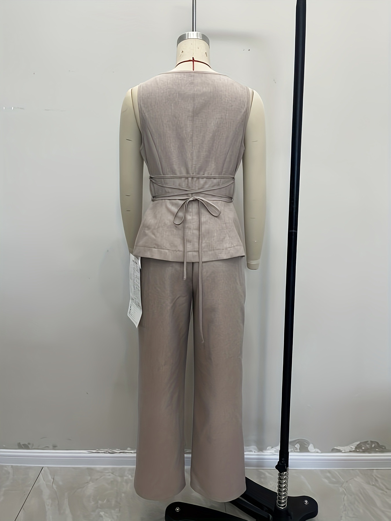 Sleeveless Top And Tie-waist Wide-leg Pants Set In French Style