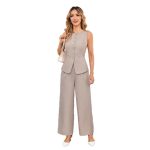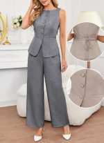 Sleeveless Top And Tie-waist Wide-leg Pants Set In French Style