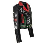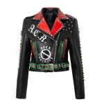 Slim Fit Tide Brand Motorcycle Leather Jacket Women Print Rivet Punk Style