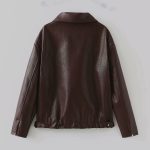 Solid Color Lapel Zipper Jacket Fashion Casual Long Sleeve Leather Coat Tops Women Clothing