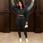 Solid-color Long-sleeve Zip-up Womens Slimming Two-piece Set