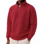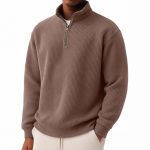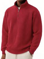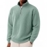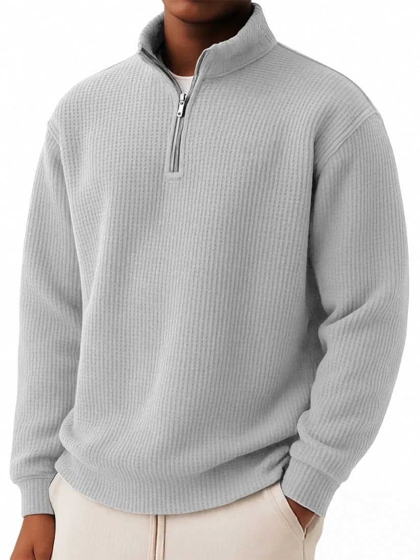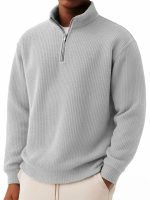 Solid-color Pullover Zip-up Relaxed-fit Casual Premium Waffle-knit Long-sleeve Polo Shirt