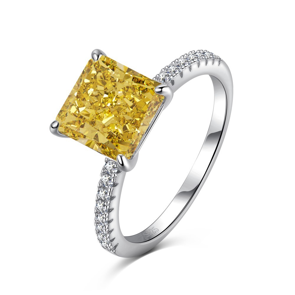 Sterling Silver Cube Sugar Ring Female Inlaid Ice Flower Cut Zircon