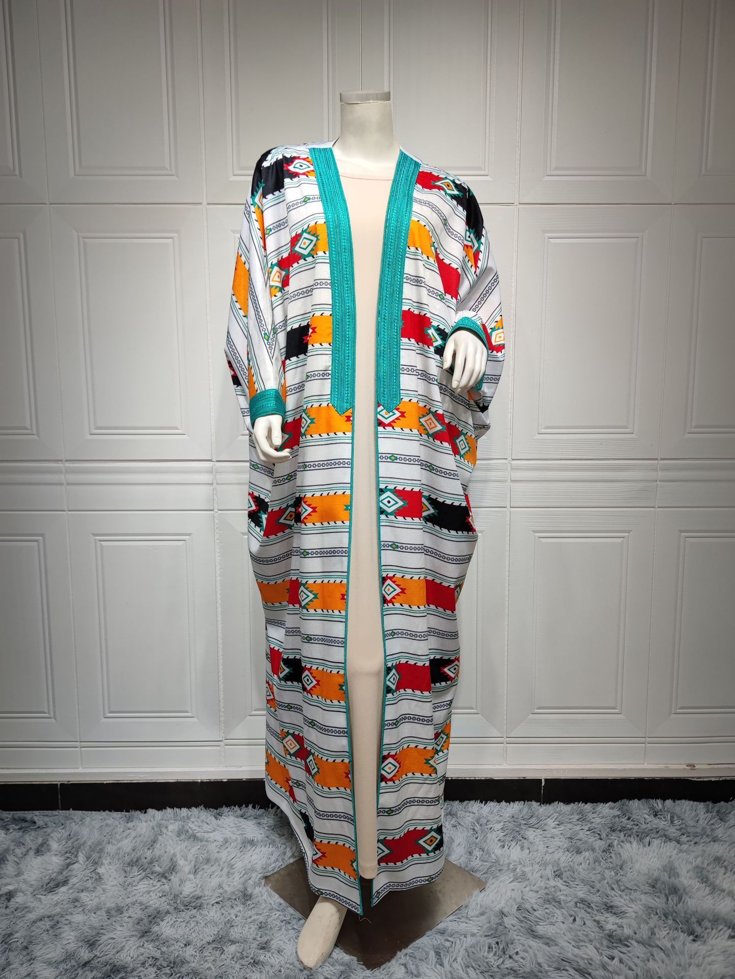 Striped Batwing Sleeve Muslim Vest Coat Two-piece Set Abaya Dress