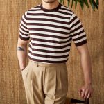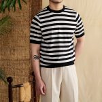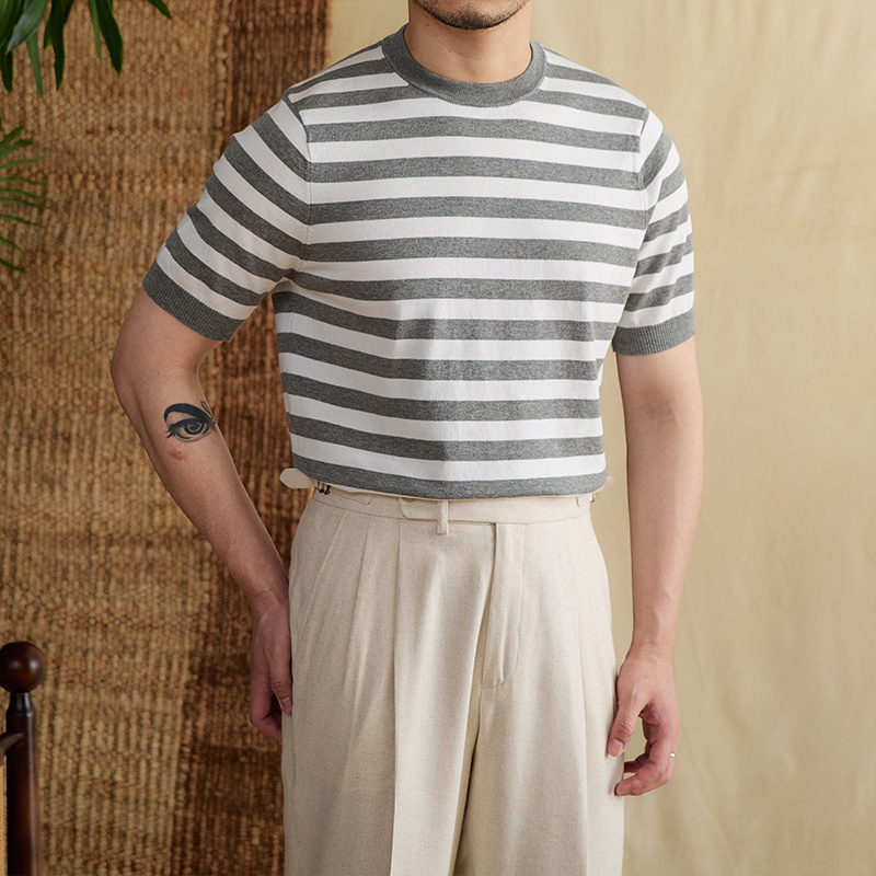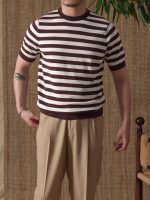 Striped Navy-striped Shirt Breathable Tencel Cotton Round Neck Short Sleeve T-shirt